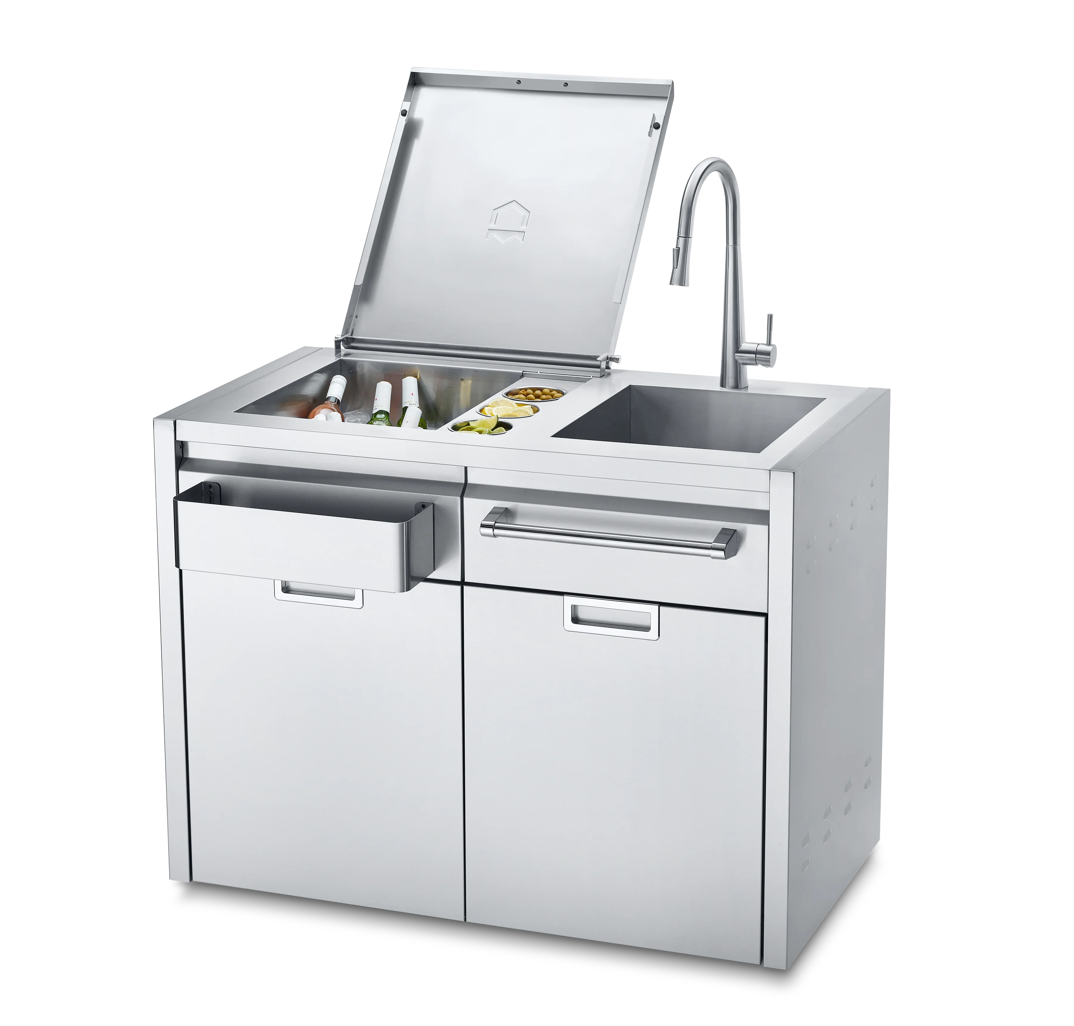 Upgrade your outdoor parties with the Crown Verity Modular Beverage Centre. Made of sleek stainless steel, this centre keeps your beverages cool and adds a touch of elegance to your outdoor kitchen. With ample storage space, you can easily entertain guests without constantly restocking. Cheers to convenience!